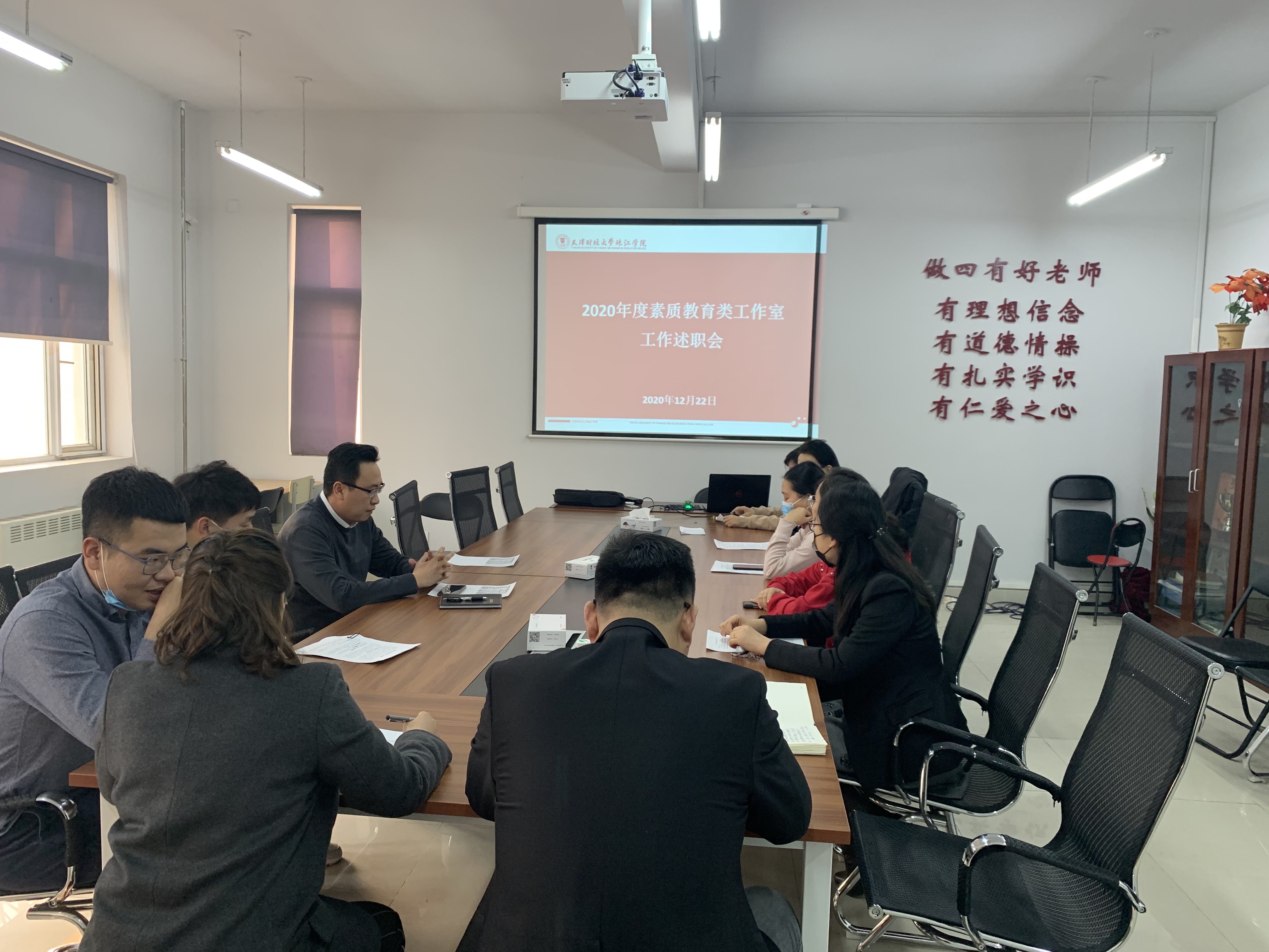 2020年12月23日下午,学生工作部在弘毅楼204会议室召开2020年素质教育类工作室述职会,体育工作室、辩论与口才工作室、绿荫工作室、超级校园工作站等13位指导老师参加,会议由王振杰部长主持。