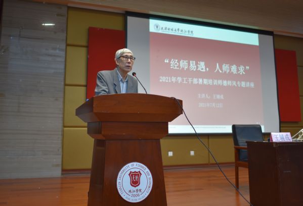 12日上午,81岁高龄的天津楷模王辅成老师结合个人事迹和师德师风主题在弘毅报告厅开展了题为“经师易遇,人师难求”的讲座。讲座中,王老师悉数古今中外教育经典,讲解了“真、爱、严、治、勤、俭、协、法”师德八法,以“四有、四引、四统一、六个需牢记”系统阐述了如何做好“人师”……年至耄耋,全程站立,引经据典,旁征博引,在场老师被王辅成老先生的博闻强识所折服、被他对党的事业奉献终身的坚定信念所震撼。