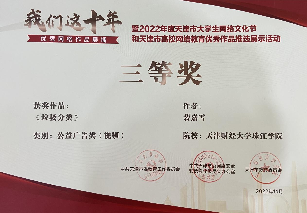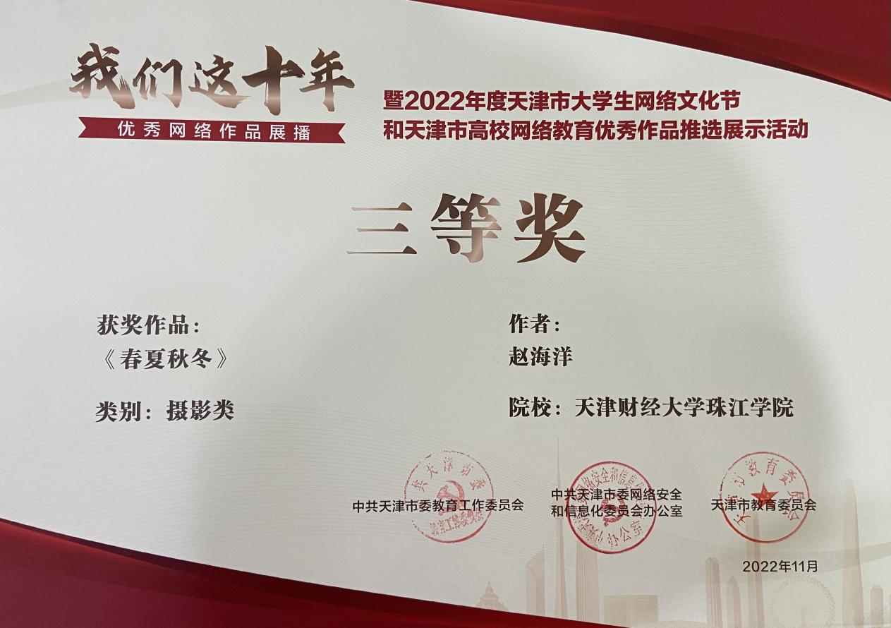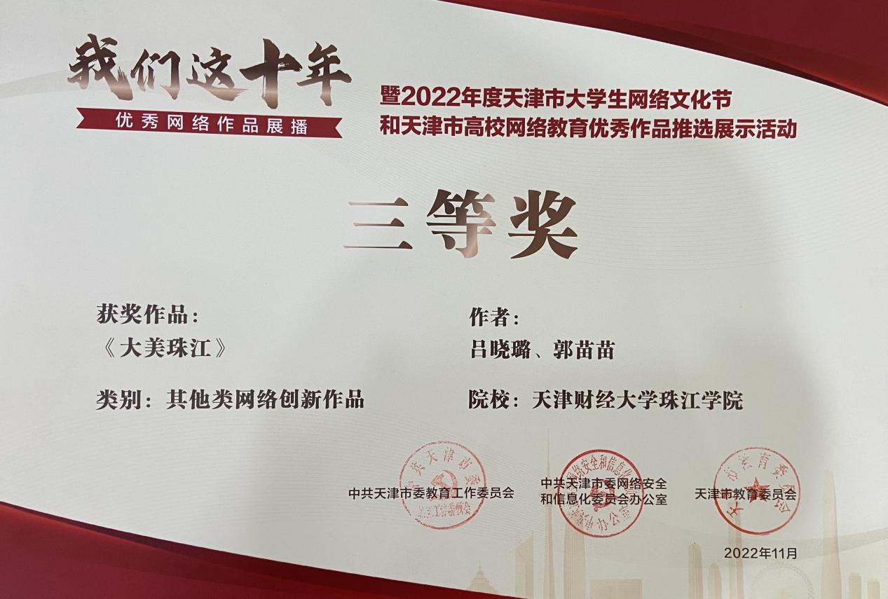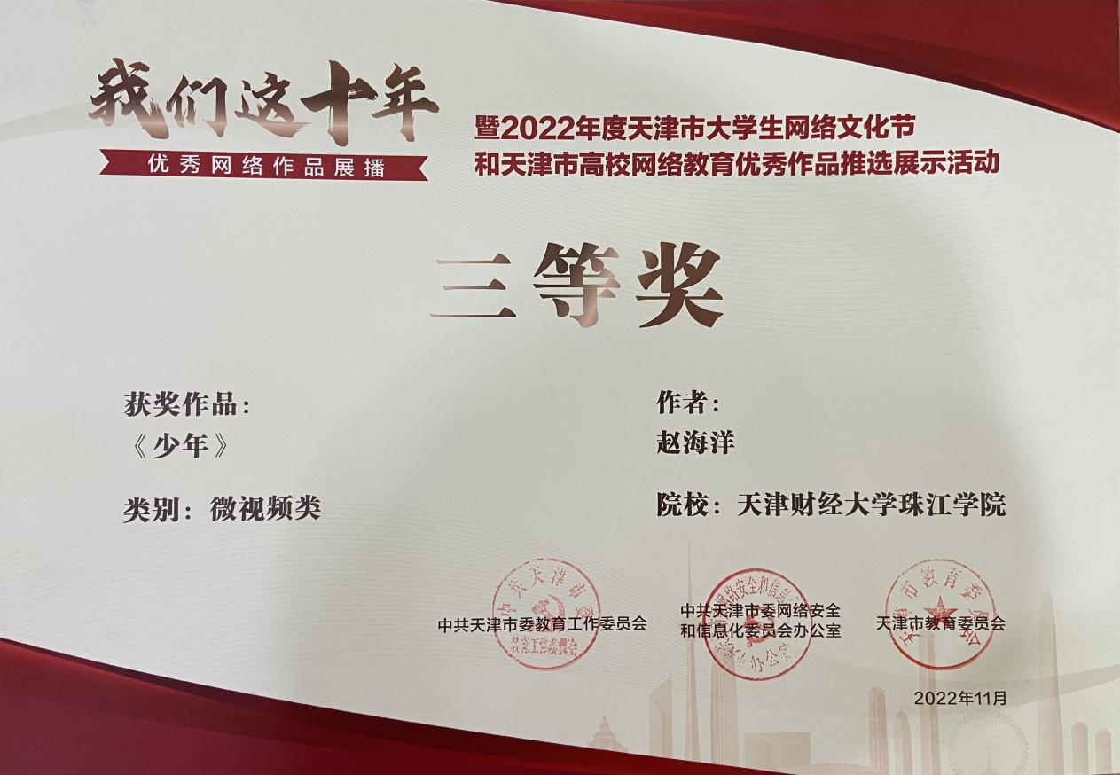 近日,由中共天津市委教育工作委员会、中共天津市委网信办、天津市教育委员会主办的“我们这十年”优秀网络作品暨2022年度天津市大学生网络文化节和天津市高校网络优秀作品推选展示活动落下帷幕,我院5件网络作品获奖。