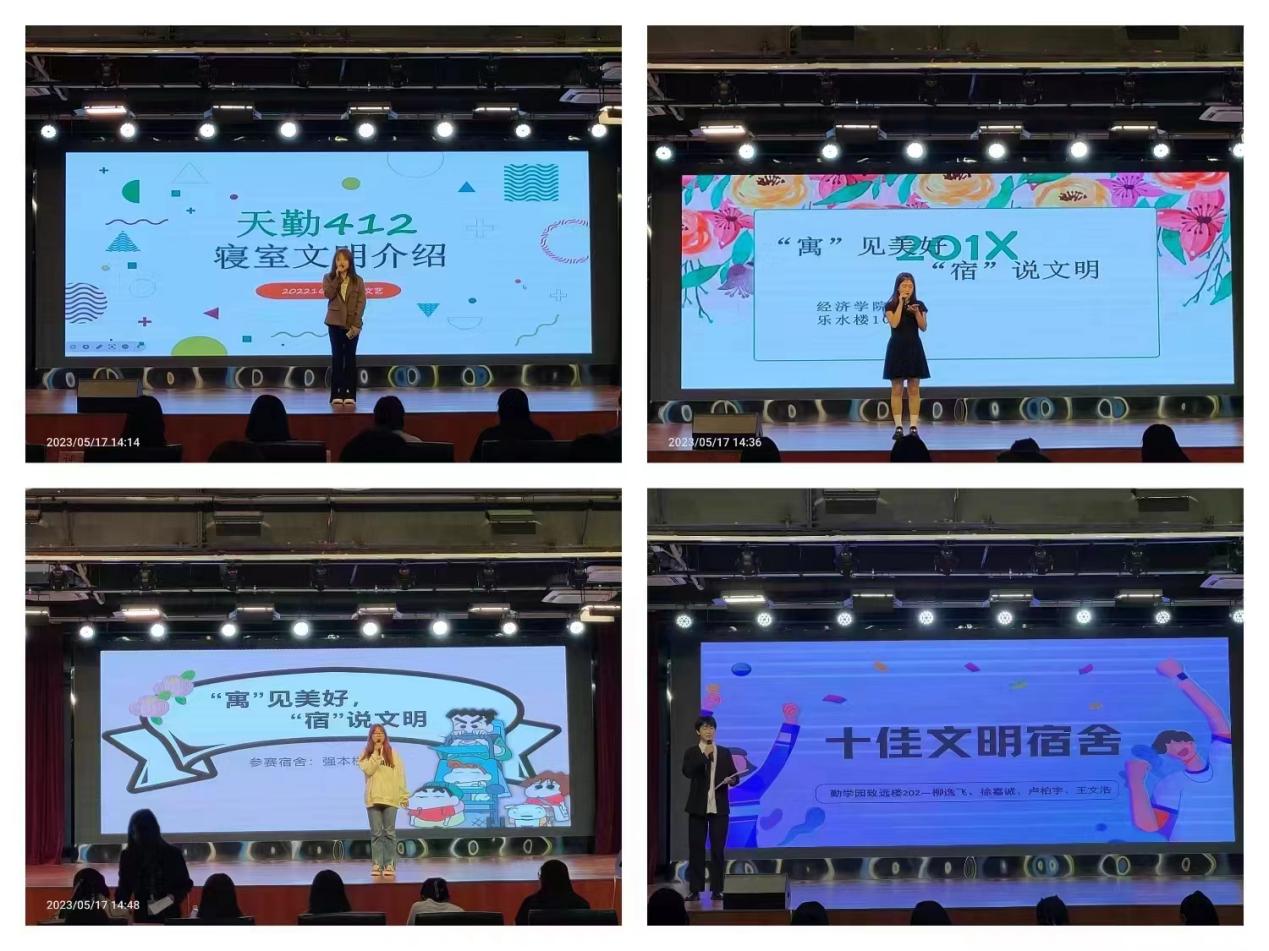 本次活动共有14支参赛队伍,参赛选手依次上台进行PPT展示,参赛选手们围绕宿舍成员学习成绩、内务卫生、宿舍文化建设、志愿活动表现、突出事迹、集体经验等方面,进行5-10分钟的现场展示,评委根据选手表现进行评分,最终前10名的宿舍被评选为“十佳文明宿舍”。每组队伍成员之间共同进步的成长经历和青春作伴的卓越风采,赢得了现场评委老师和同学们的声声赞叹和阵阵掌声。评比结束后,学生工作部王超老师为本次获得“十佳文明宿舍”称号的队伍颁发荣誉证书。