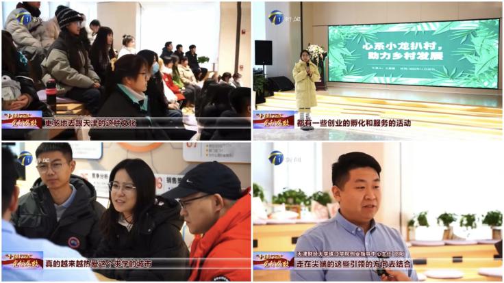 近日,天津电视台新闻频道专题节目——《“十项行动”见行见效》对学院2023年大创团队走进天开高教科创园交流学访活动进行报道。其中由艺术学院董柏言同学主持的《无限丹青》项目和经济学院童欣同学主持的《福建通天龙窑建盏的传承与创新》项目,同时获批首批天津市高校入驻天开园展示展卖精品项目。各二级学院分管创新创业的辅导员老师参加了此次活动。