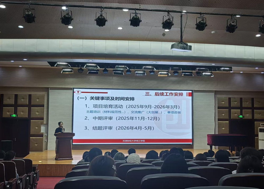 9 月 17 日下午,学院2025年大学生创新训练计划(以下称“大创计划”)工作推动会在弘毅楼报告厅成功举办。学生工作部部长郑鲲鹏、各项目学生负责人及指导老师参加本次推动会。会议由创业指导中心孙怡老师主持。
