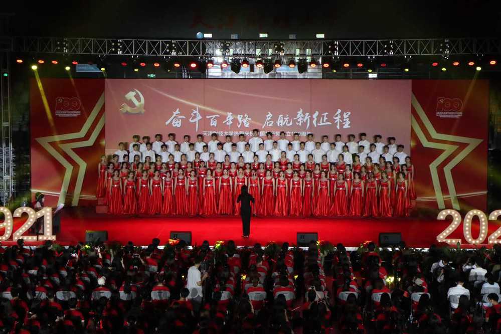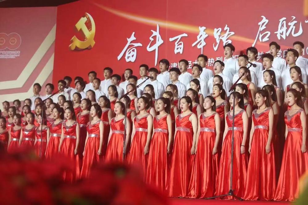 2021年6月25日,由殷睿婵、王妍珏两位指导老师携音乐系“远方合唱团”到天津财经大学本部,代表我校参加“天津财经大学庆祝中国共产党成立100周年群众性歌咏大会”活动。