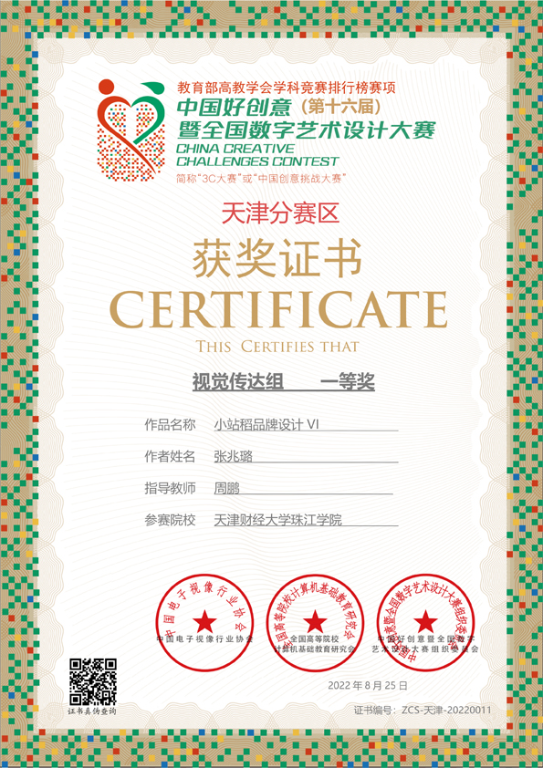 第十六届中国好创意暨全国数字艺术设计大赛国家级天津赛区一等奖