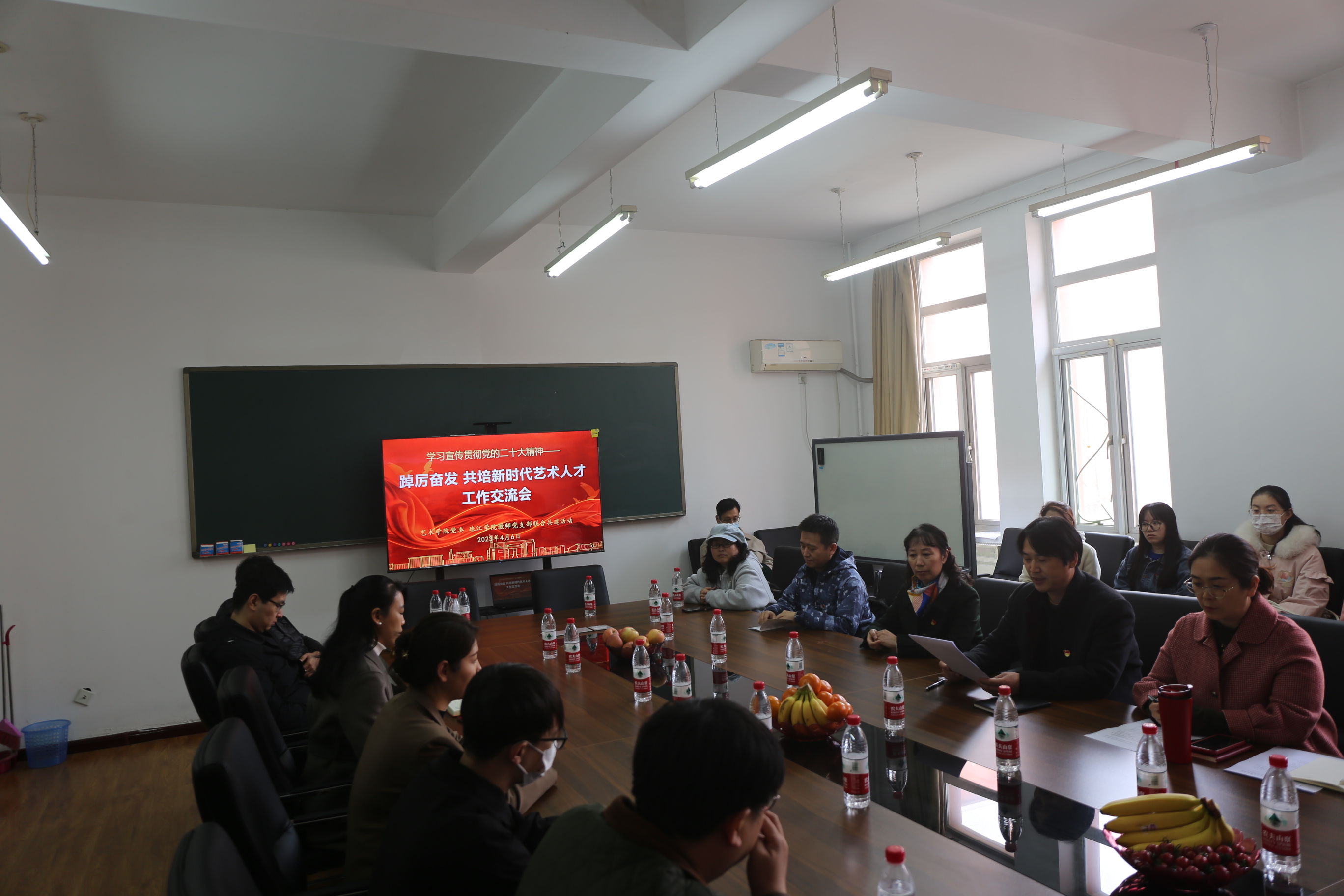 艺术学院教师党支部书记郑楠与财大艺术学院来访师生交流了艺术观教育视角下的艺术院校师德师风建设,她说,加强师德师风建设是新时代艺术院校事业发展的基本要求,是艺术院校落实立德树人根本任务的关键核心,引导教师既做“经师”,更做“人师”。