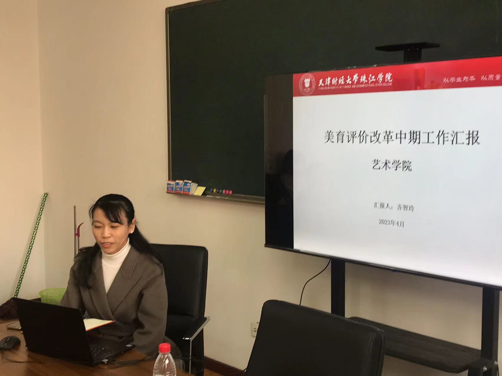艺术学院艺术设计系基础教研室主任齐智玲介绍了美育工作和乡村振兴和非遗传承工作开展情况和取得成果。成果包括:美育作品多次参加国家级、省部级展览。“乡村振兴与非遗传承”科研团队,于2022年获得省部级课题立项3项、校级重点项目2项。