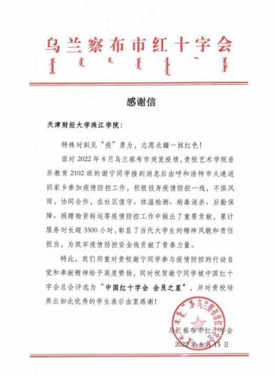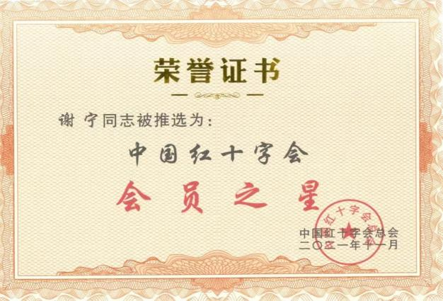 2019年与红十字会结缘,数年来参加了疫情防控、全国文明城市创建、爱心义演、救护知识宣传、人道文化传播、爱心救助、“学雷锋”做好人好事等志愿服务活动,受到多次表彰。截至目前累计志愿服务时长达3500小时,先后被评为中国红十字会“会员之星”、内蒙古向上向善好青年等称号。