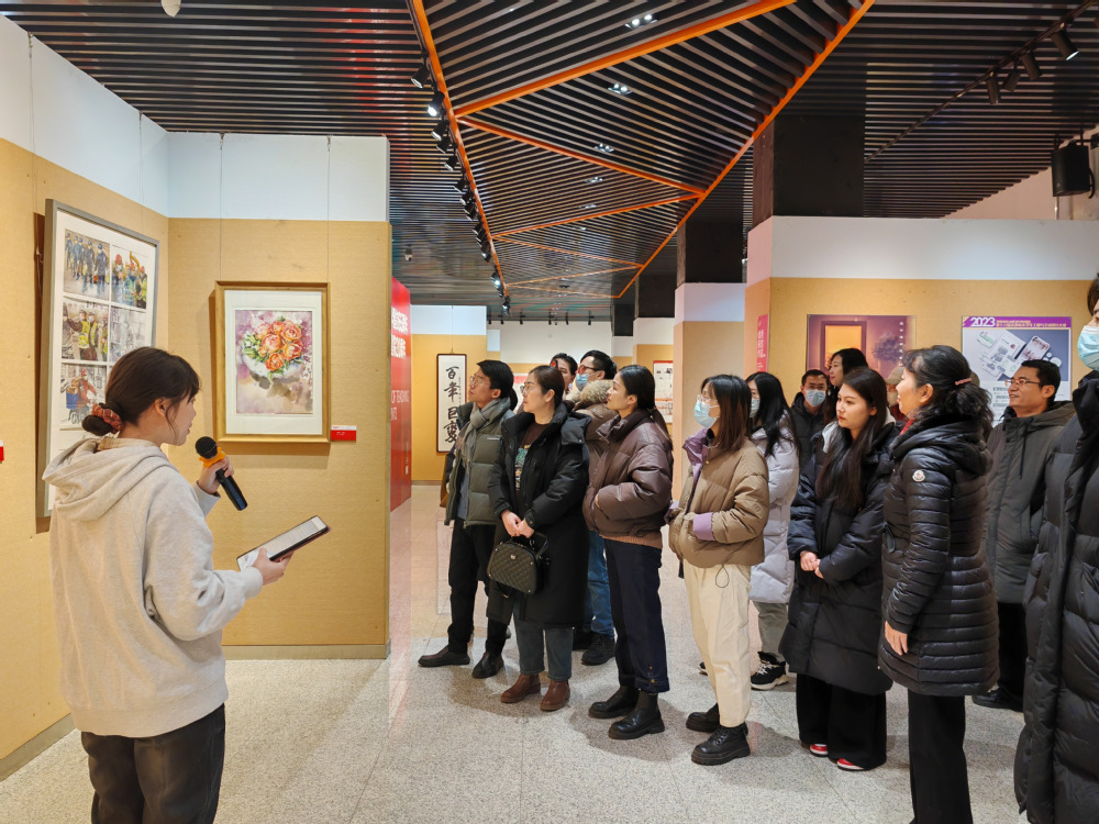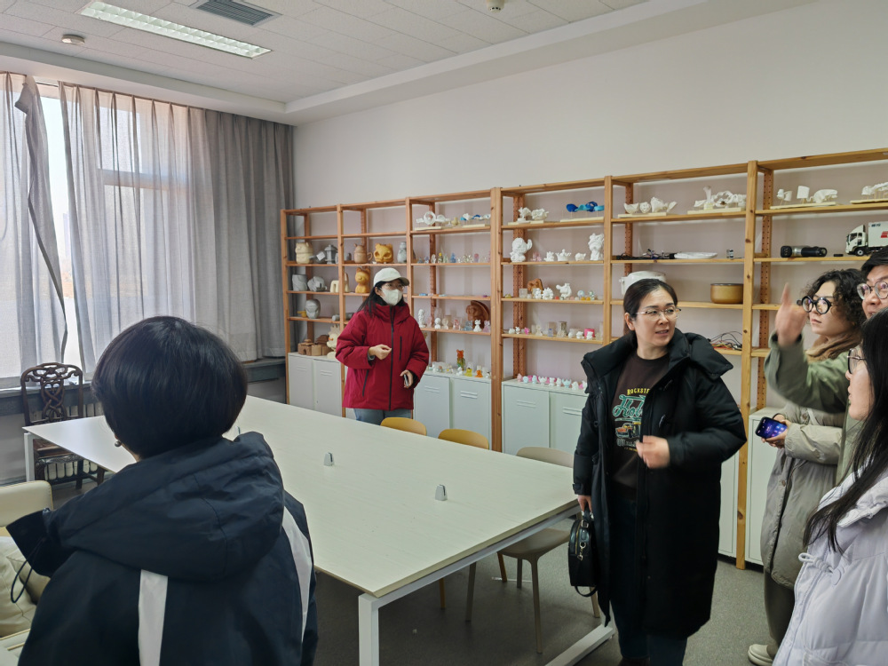 活动第一阶段参观了天津财经大学建校65周年暨艺术学院建院20周年教学成果展。该展览通过视觉感官向我们传达了天津财经大学艺术学院为深入贯彻党的二十大精神,积极落实美育工作的不懈努力。该展览以“智、美、文、生”为主题,倡导五育并举、重点关注美育和劳动教育;在观展过程中,双方再次明确学生培养方向应朝着“智能、美育、文化、生活”稳步前进,在深入推进内涵式高质量发展、加快学科建设成果成效的过程中,双方应坚持长期紧密联系,进一步增进交流、深化合作、互学互鉴、携手并进。