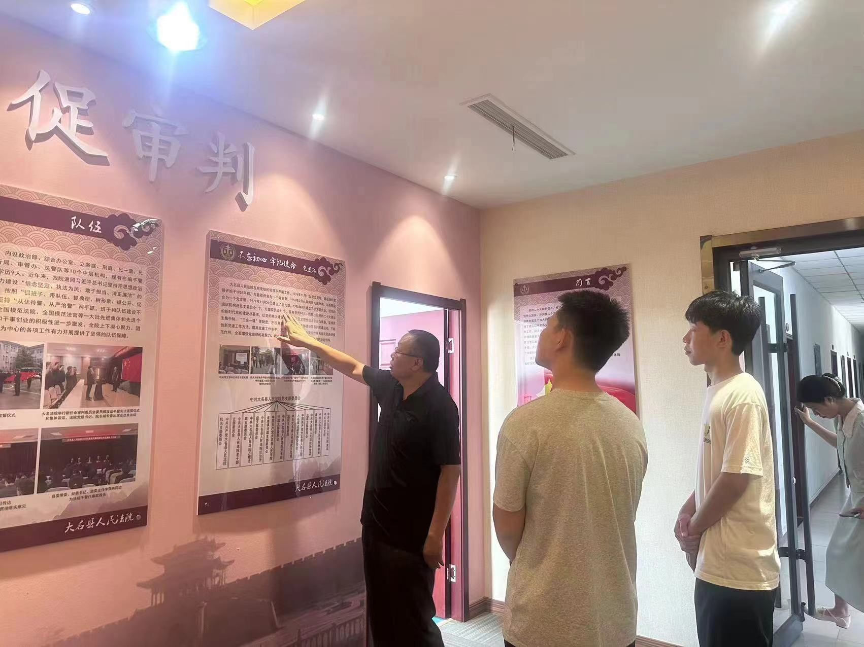 实践团利用暑期对接了河北省大名县人民法院,于8月14日-8月18日开展了为期一周的社会实践活动。