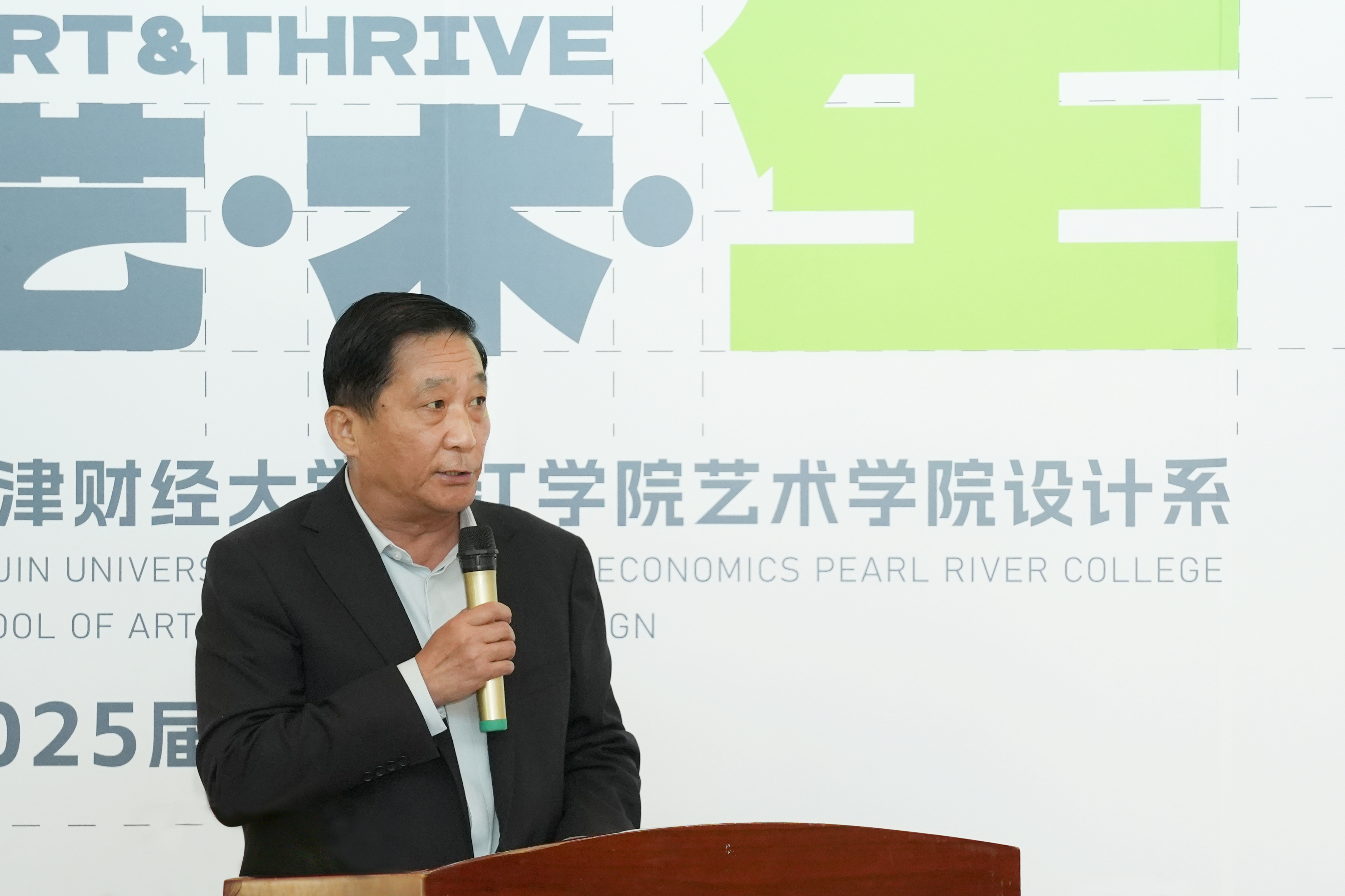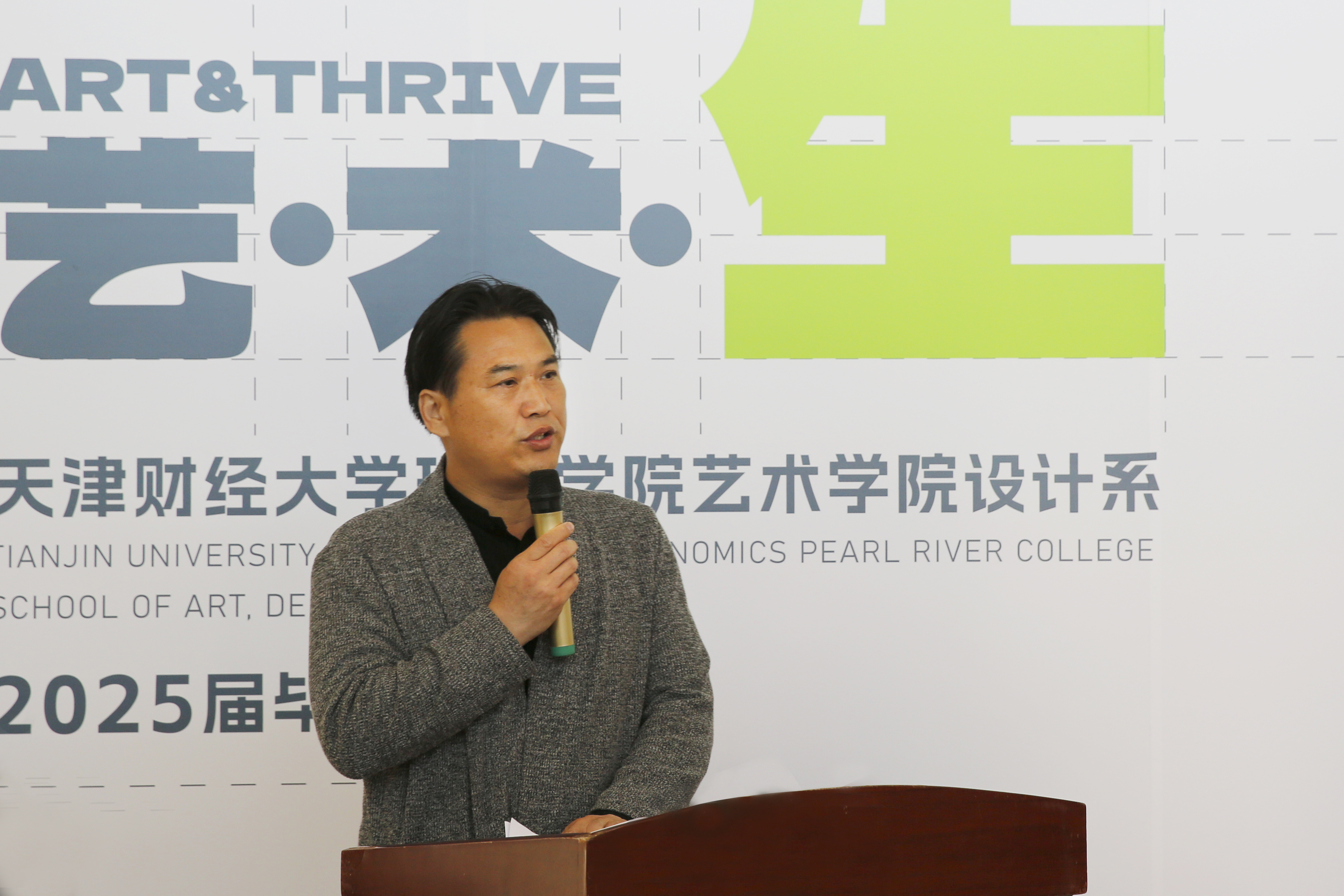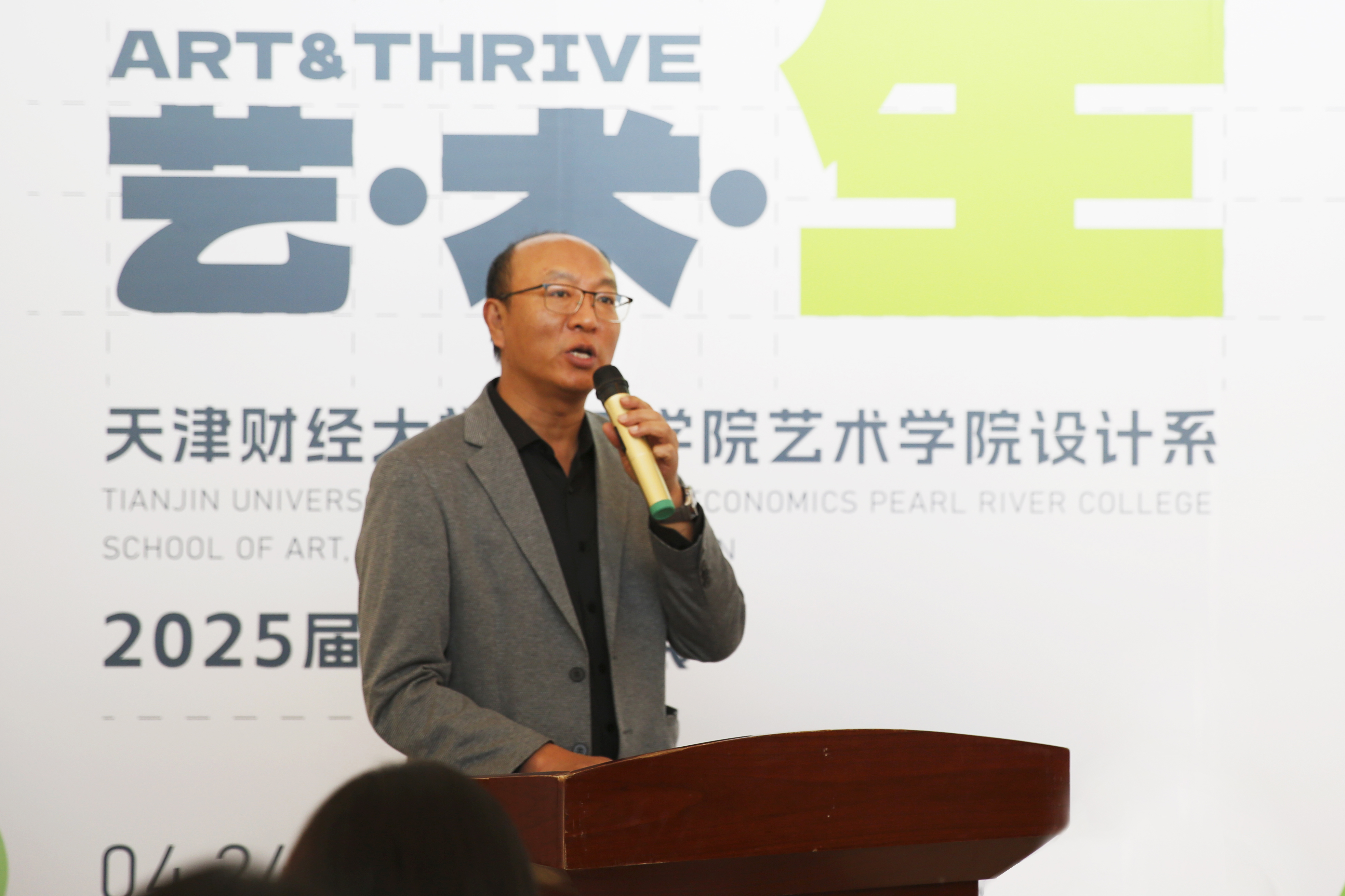 随后,艺术学院院长滑寒冰发表发言。他感谢学院为师生搭建起人生学习的平台,感谢宝坻这片沃土为师生学以致用提供广袤实践土壤,感谢师生团队以卓越协作力为学院发展谱写出美丽华章。此次毕业设计作品展体现了这四年时光中老师们的辛苦培育,与同学们的刻苦学习。这不仅是学子逐梦路上的轨迹印记,更承载着高校以设计育人的核心理念与实践成果。