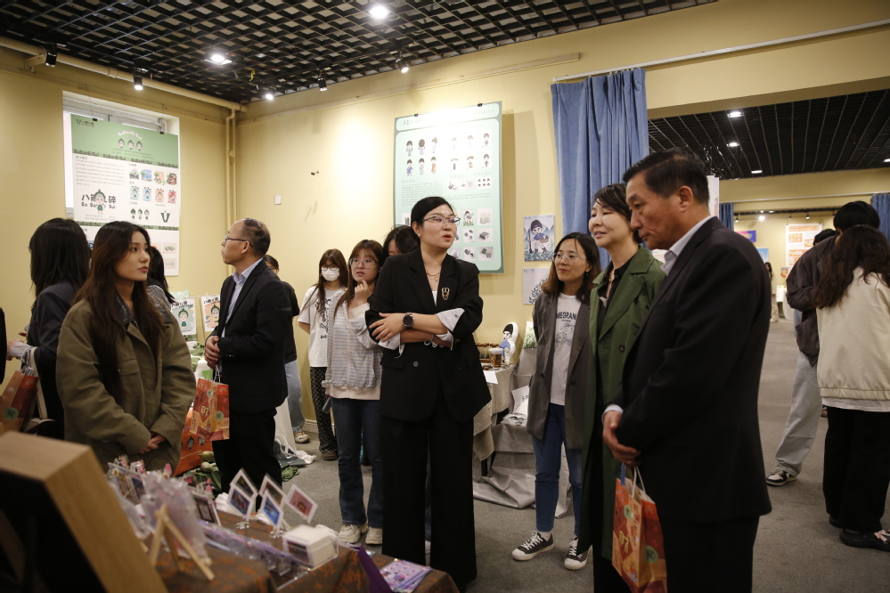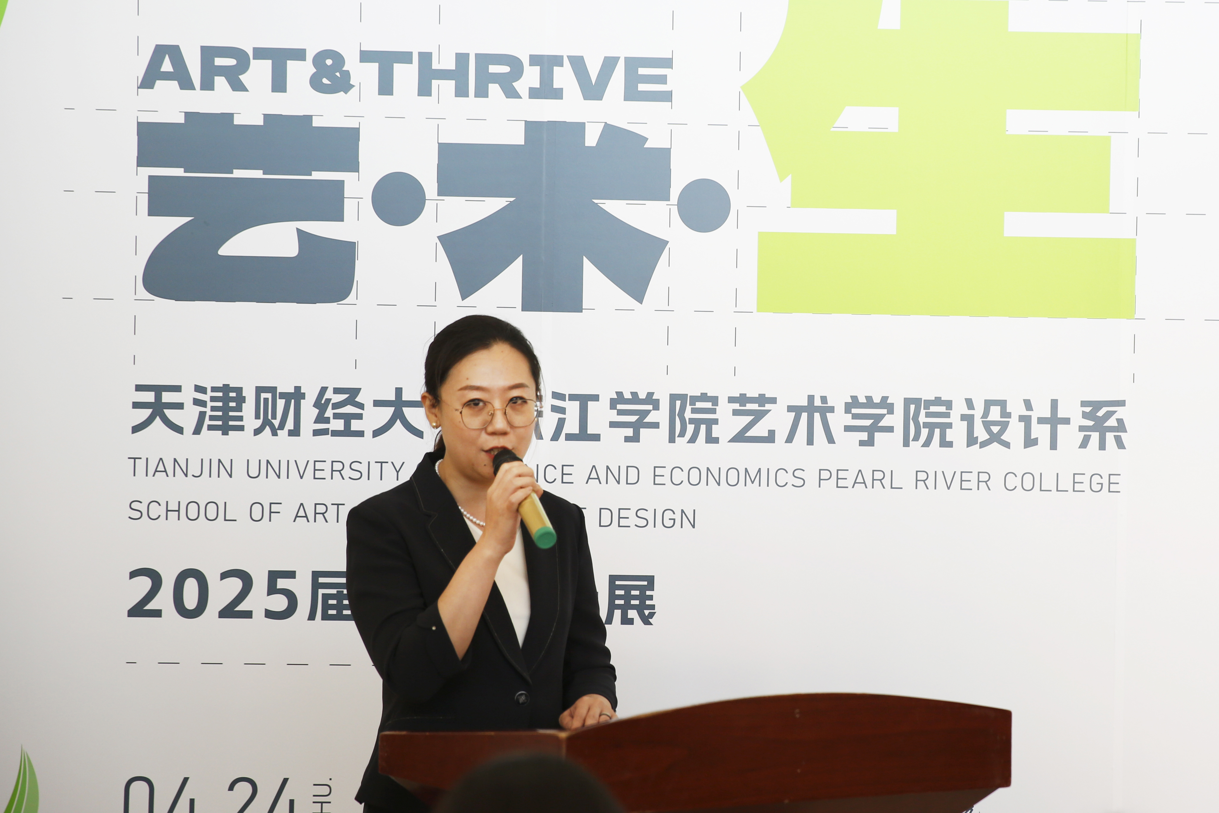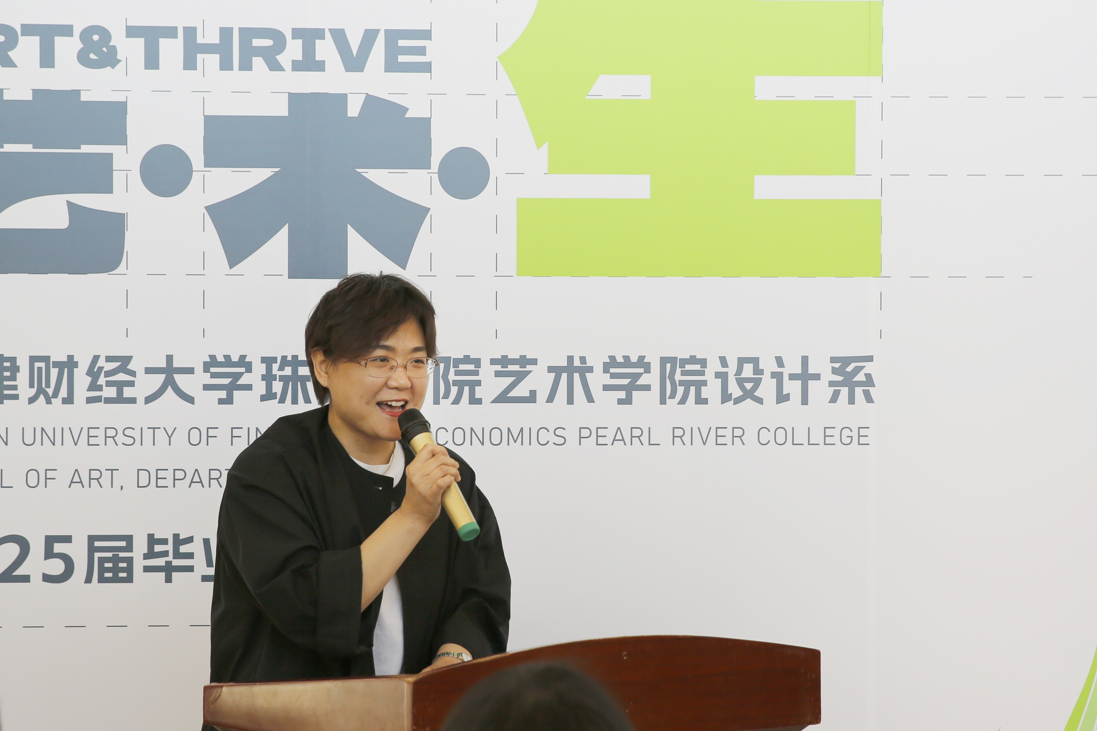 随后,艺术学院院长滑寒冰发表发言。他感谢学院为师生搭建起人生学习的平台,感谢宝坻这片沃土为师生学以致用提供广袤实践土壤,感谢师生团队以卓越协作力为学院发展谱写出美丽华章。此次毕业设计作品展体现了这四年时光中老师们的辛苦培育,与同学们的刻苦学习。这不仅是学子逐梦路上的轨迹印记,更承载着高校以设计育人的核心理念与实践成果。