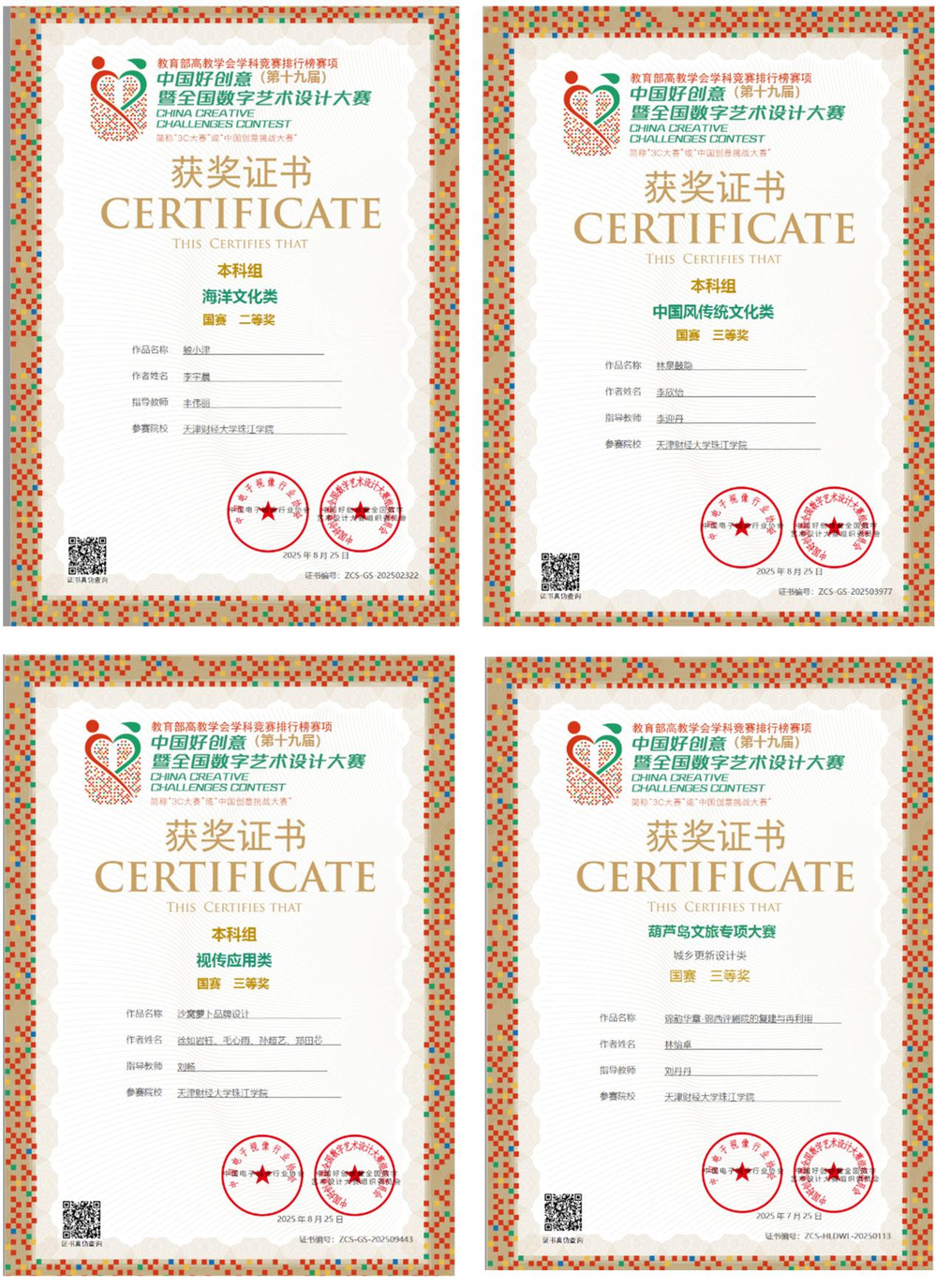 2025年8月,艺术学院师生在第19届中国好创意暨全国数字艺术设计大赛评选中成绩斐然,共荣获29项大奖。中国好创意暨全国数字艺术设计大赛是入选教育部中国高等教育学会《全国普通高校大学生竞赛分析报告》的重要赛项,作为我国数字艺术设计领域首个跨学科、多专业、参与院校多、影响广泛的全国性权威赛事,始终引领数字创意与数字教育融合发展。