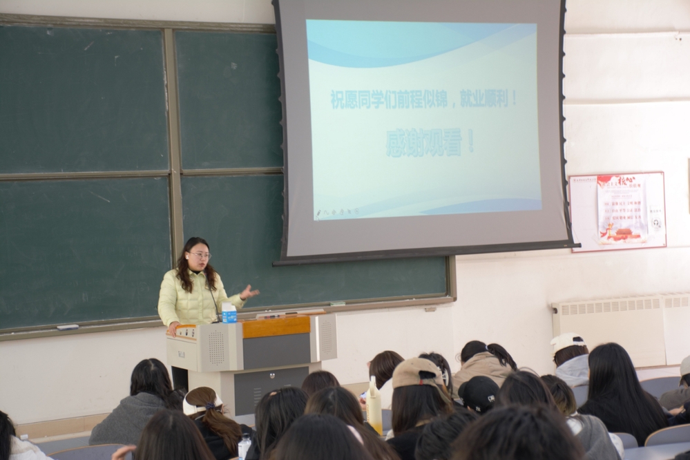 会上,辅导员杜艳老师针对毕业生们普遍关注的就业材料填报问题,进行系统而详尽的专题讲解对就业材料的准备和就业信息的填写有一个清晰的认识,详细讲解就业材料的注意事项以及就业信息填写系统的操作流程,为后续毕业生高效完成就业材料提交、顺畅推进就业流程奠定了基础。