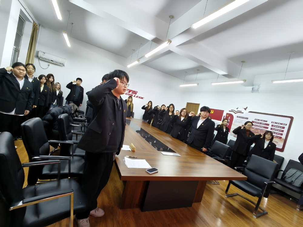 12月11日,艺术学院2025年下半年新团员入团仪式在学院209会议室隆重举行。仪式由学院团委办公室主席刘康宁主持,33名新团员肩负荣光与使命,在团旗下开启青春新征程。
