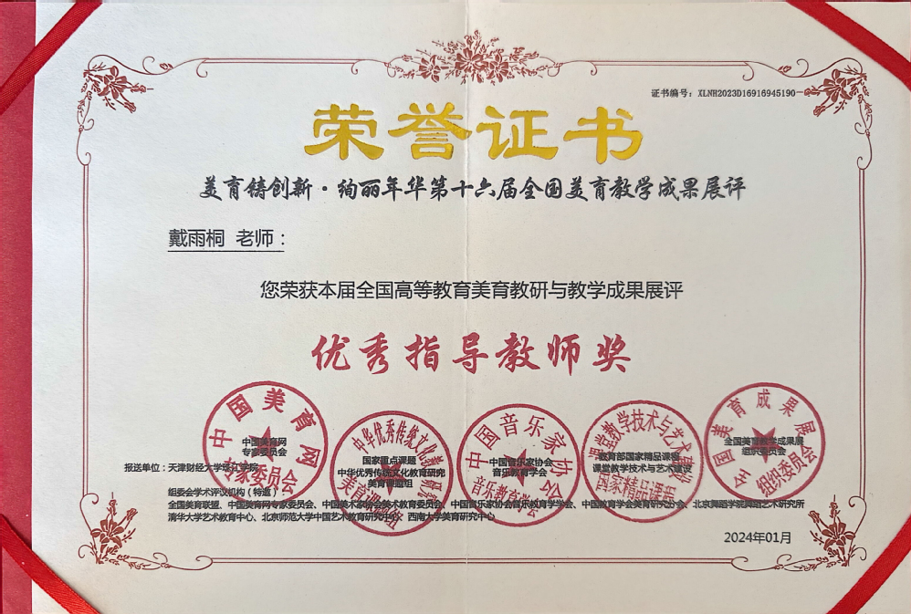 第十六届全国美育教学成果展教师组优秀指导教师奖