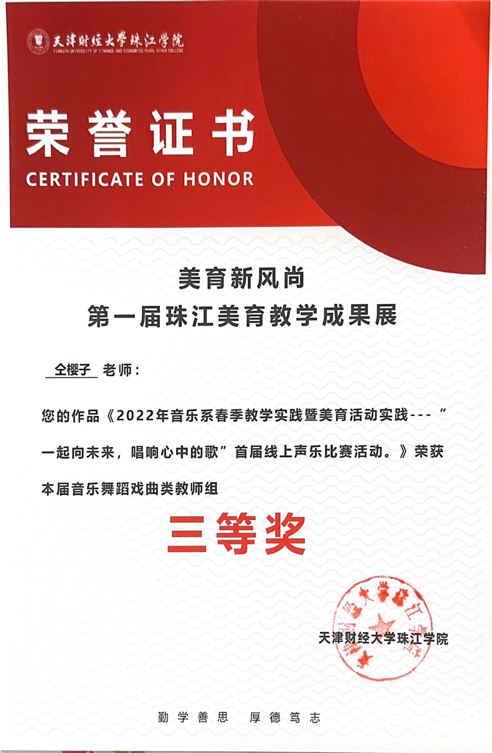 美育成果展音乐舞蹈戏曲教师组三等奖