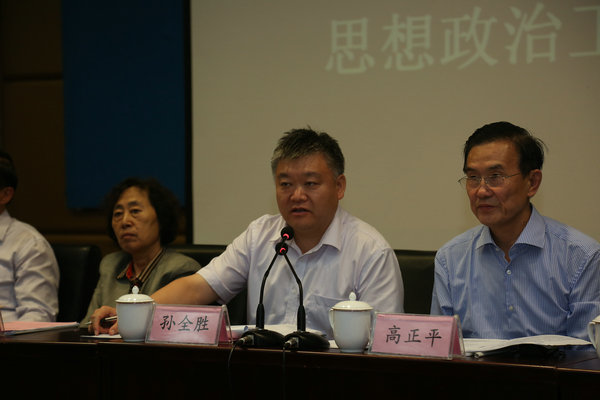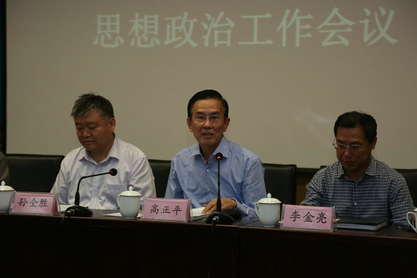 会上,高正平院长指出,全胜书记出席此次会议是天津财经大学党委对今年会官方网站的高度重视,全胜书记的讲话符合今年会官方网站的实际,对我们做好思想政治工作有很强的指导性。刚才建航书记代表学院做的思想政治工作部署,我完全同意,希望相关部门认真学习研究,加快工作落实。他说,加强和改进高校思想政治工作,事关办什么样的大学、怎样办大学的根本问题,事关党对高校的领导,事关中国特色社会主义事业后继有人,是一项重大的政治任务和战略工程。为此他就我院思政工作提出了四点要求,一是学习总书记在全国高校思想政治工作会议上的重要讲话是我们必须长期坚持的一项政治任务;二是在确保社会主义办学方向上,我们要持续不断的进行新的思考和新的行动安排;三是要努力探索把思想政治工作融入教学活动中去的新做法;四是要树立“大思政”的理念,形成全员上下左右齐抓共管的工作格局。