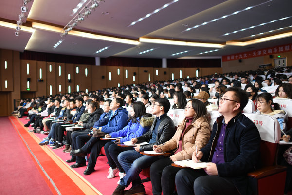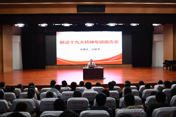 2017年12月1日下午,我院召开解读十九大精神专题报告会,学院院长高正平教授担任宣讲人,学院副院长李金亮、院长助理王文兵出席,学工部、二级学院辅导员及940余名学生到场聆听。