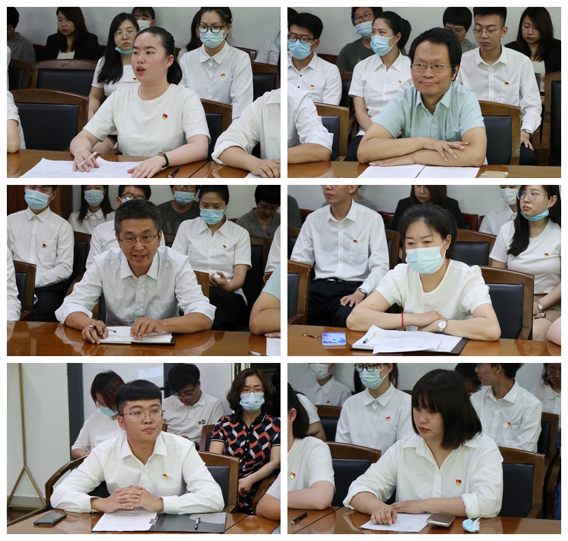 与会的党员教师、民主党派代表踊跃发言。先进基层教师党支部书记安轶龙、经济学院教师党支部书记邱兰、政治理论课部党支部书记谢赛银、体育部党支部书记褚孝勇、党员教师张强、李荣,民主党派教师代表刘奇勇、刘宁、边小宇,以及管理学院、经济学院、数据工程学院、艺术学院党总支书记先后做了发言,觉得身上的担子更重了,立德树人的责任感和使命感更加强烈了,他们表示要结合自身实际和工作岗位要求,认真学习习近平总书记的讲话,认真遵从习近平总书记对全体党员的号召,做一名有理想信念、有道德情操、有扎实知识、有仁爱之心的好老师。