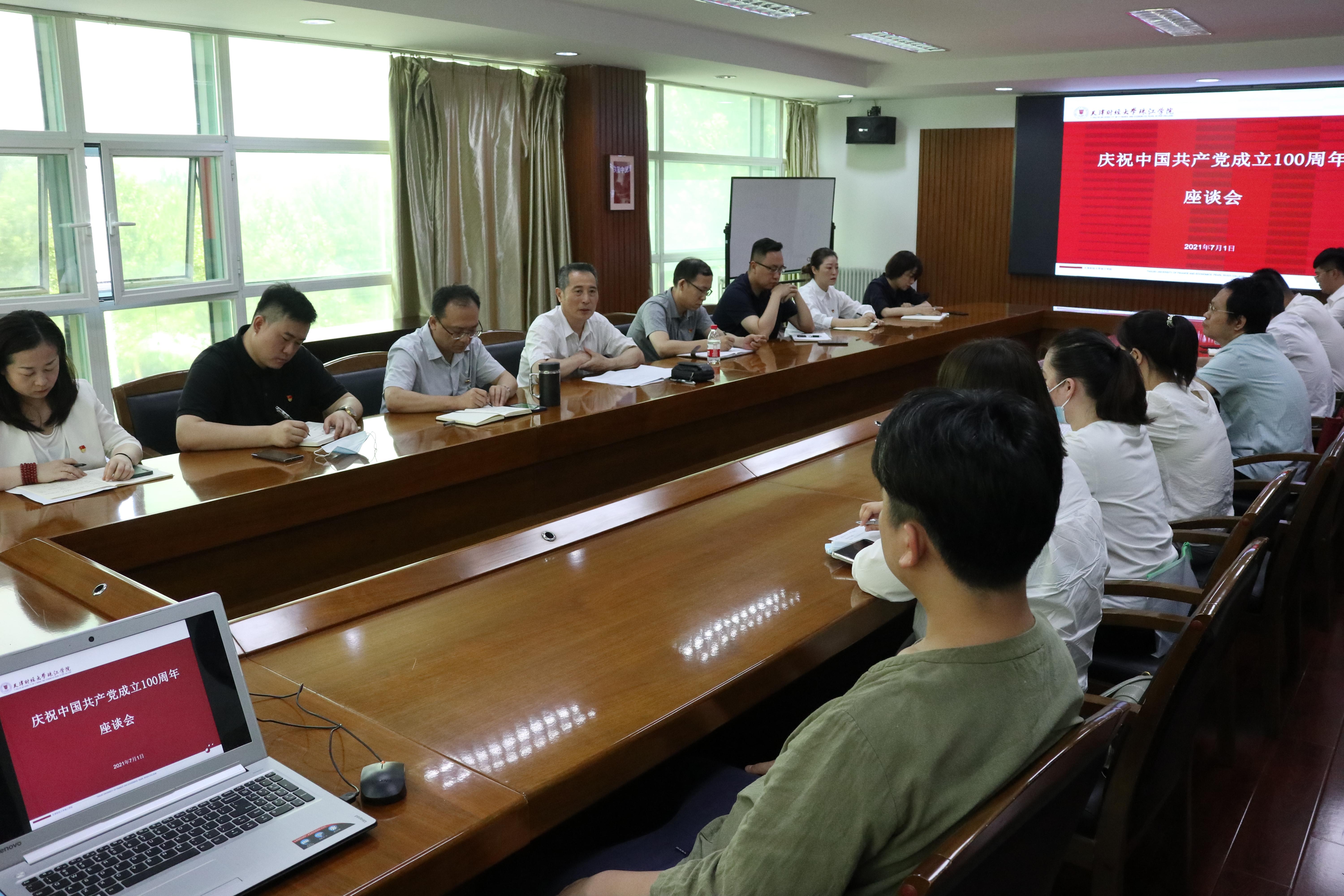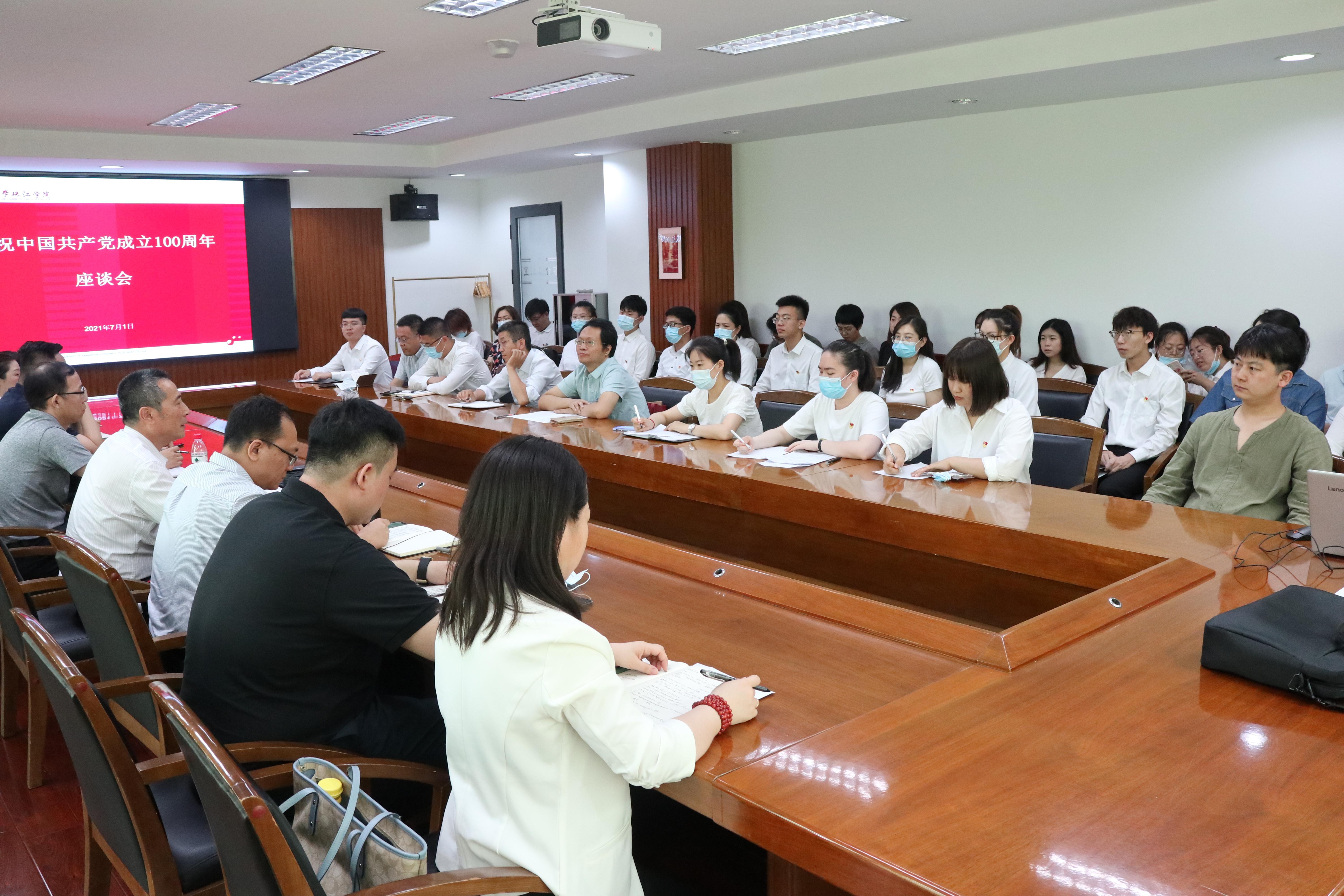 会后,院党委书记李建航带领在场全体师生重温入党誓词。在弘毅楼321召开了“庆祝中国共产党成立100周年座谈会”。院党委书记李建航、党委副书记王猛、纪委书记白晓,教师党员代表、民主党派代表、学生代表近40人参加了座谈会。李建航带领大家学习了习近平总书记在庆祝中国共产党成立100周年大会上的重要讲话,特别是对青年一代的殷殷嘱托和深情期望,他要求当代青年要以总书记讲话为指引,增强信心,开阔视野,将自己的发展与祖国和人民的需要联系在一起,为党和人民贡献力量。