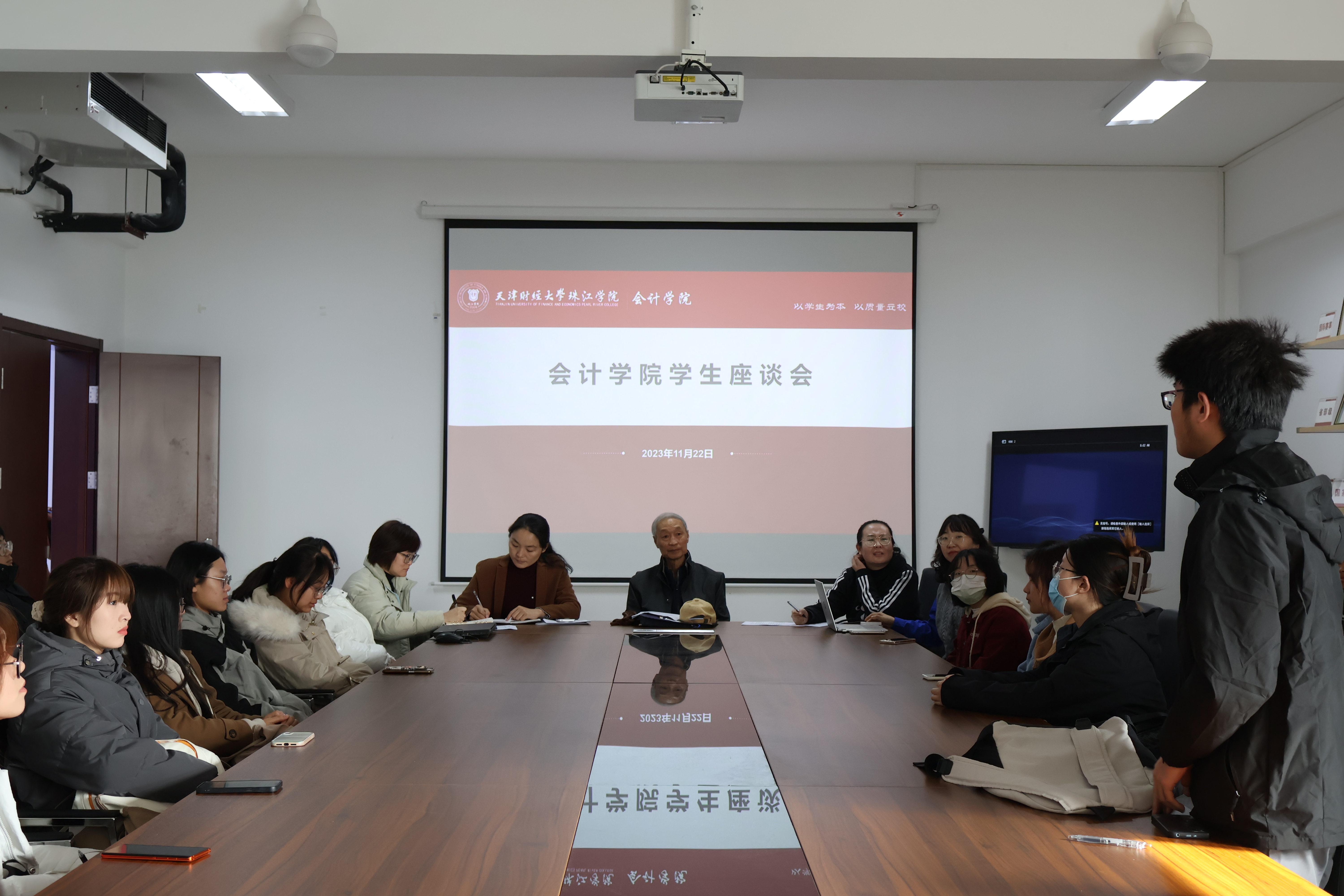 会计学院于11月23日在中和楼B409召开会计学院“学风建设月”活动之学生座谈会。会计学院院长韩传模教授、会计学系副主任冯怡、财务管理系副主任汪蕾、审计学教研室主任樊嘉钰三位主任出席会议,各年级学生代表参加会议。