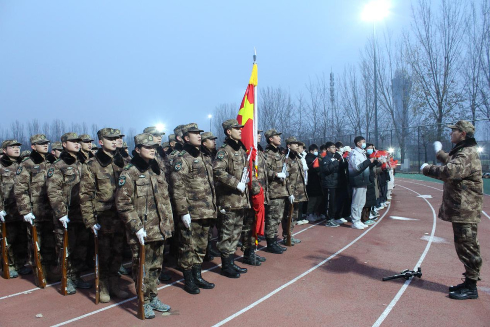接下来,退役学生代表邵易棠同学在演讲中提到:作为新时代的中国青年,要做好历史记忆的传承人,要牢牢记住是烈士们的鲜血染红了国旗,是烈士们的浴血奋战为我们赢得了今日的和平环境,是烈士们用生命保卫了我们的祖国。战争年代,在敌人的炮火硝烟中,我们的先辈抛头颅洒热血,用血肉之躯、无畏之勇,赶跑了侵略者,建立了新中国。那么今天,长在红旗下的我们,更应有所作为!勿忘历史,勇毅前行,为实现中华民族伟大复兴伟大梦想贡献青春力量!