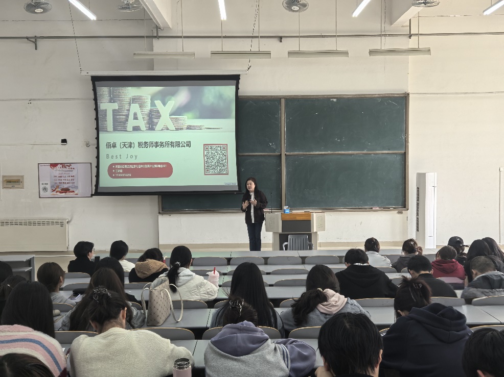 2.金税四期与未来税务政策导向。王女士介绍我国税收征管新上线的金税四期系统,让同学们了解到我国税收征管进入了智能化和数字化新时代,实现了税务全流程的信息化、数字化和智能化管理,提升税收征管效率和精准度。同时王女士还强调,“未来税务监管将呈现“宽进严管”趋势,转向依托大数据和风险模型的事后精准稽查”。
