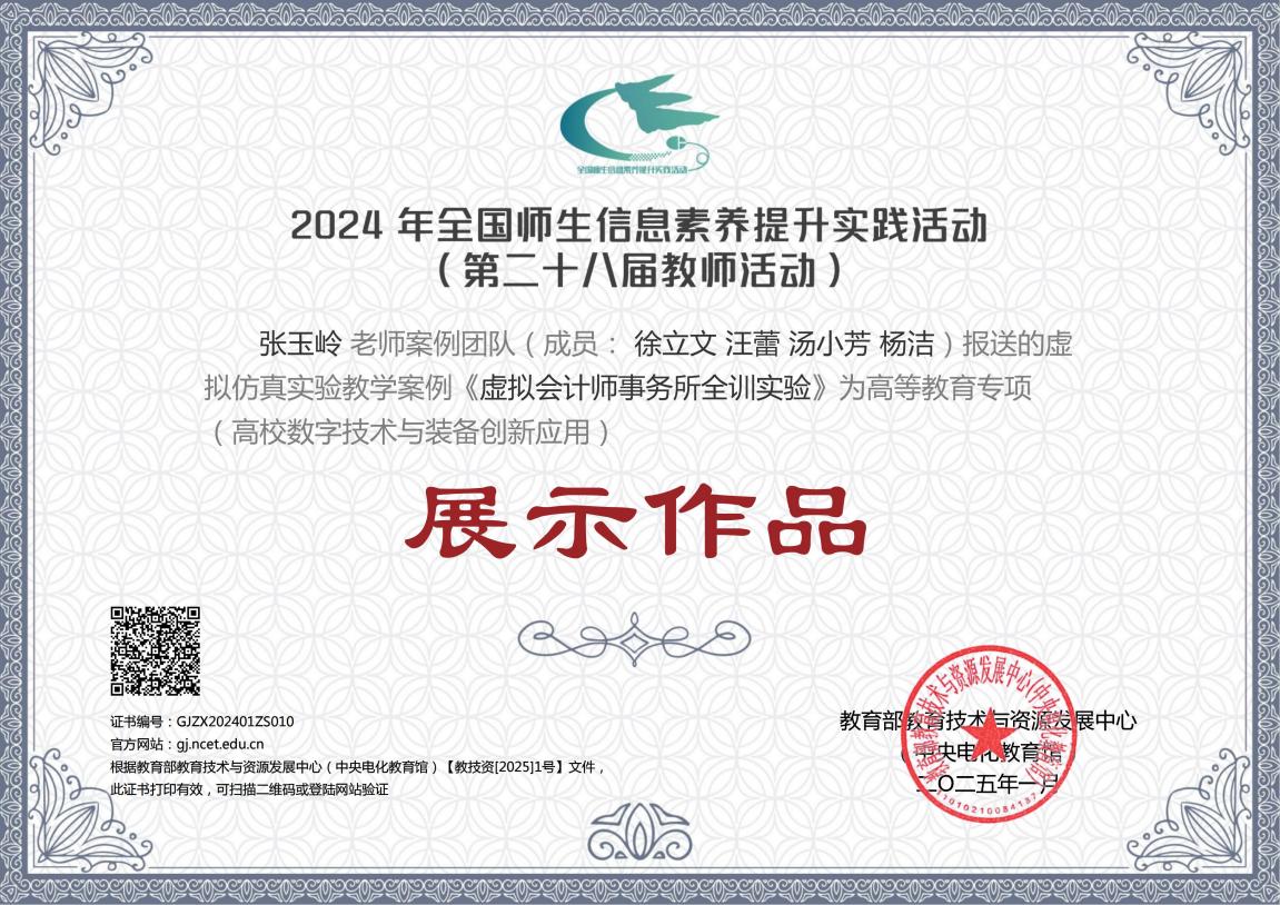 会计学院会计学系副主任张玉岭老师案例团队(成员:徐立文、汪蕾、汤小芳、杨洁 )报送的虚拟仿真实验教学案例《虚拟会计师事务所全训实验》脱颖而出,成功入选高等教育专项(高校数字技术与装备创新应用)展示作品。