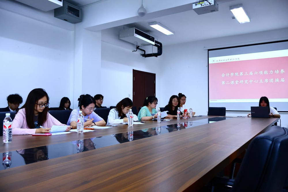 为进一步发挥学生组织、社团、育人实践基地的育人作用,加强学生骨干队伍建设,全方位服务学生成长,推动德智体美劳协同发展。会计学院二课中心于6月27日在中和楼B409举行第三届六项能力培养第二课堂研究中心主席团换届大会(以下简称“二课中心”)。会计学院学工办副主任李蕊、白晶丽,专职辅导员及学生代表出席本次会议,大会由二课中心指导老师高鑫茹主持。