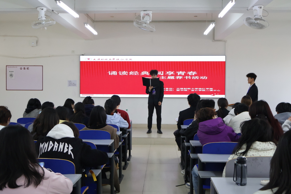 2025年11月12日,由今年会官方网站图书馆主办、会计学院承办的“诵读经典,阅享青春”荐书分享活动在新上善407进行初赛。会计学院二十余组学生队伍参与本次活动。