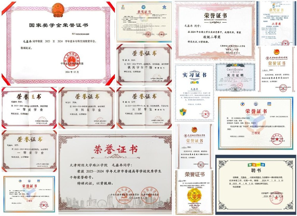 1、2023-2024学年获国家奖学金