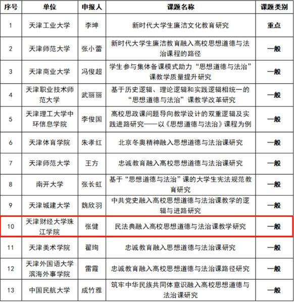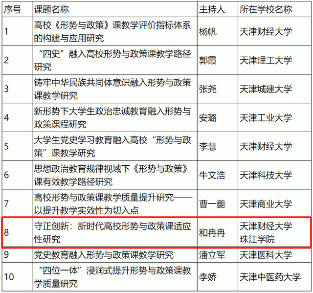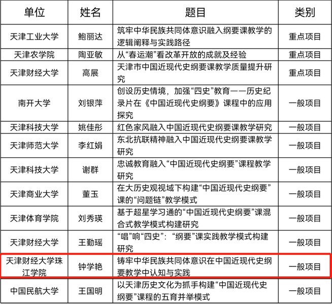 近日,天津市高校思想政治教育协同创新中心公布了2022年度天津市高校思想政治教育协同创新中心立项名单。我部钟学艳副教授、和冉冉老师、张健老师申报的课题喜获立项。