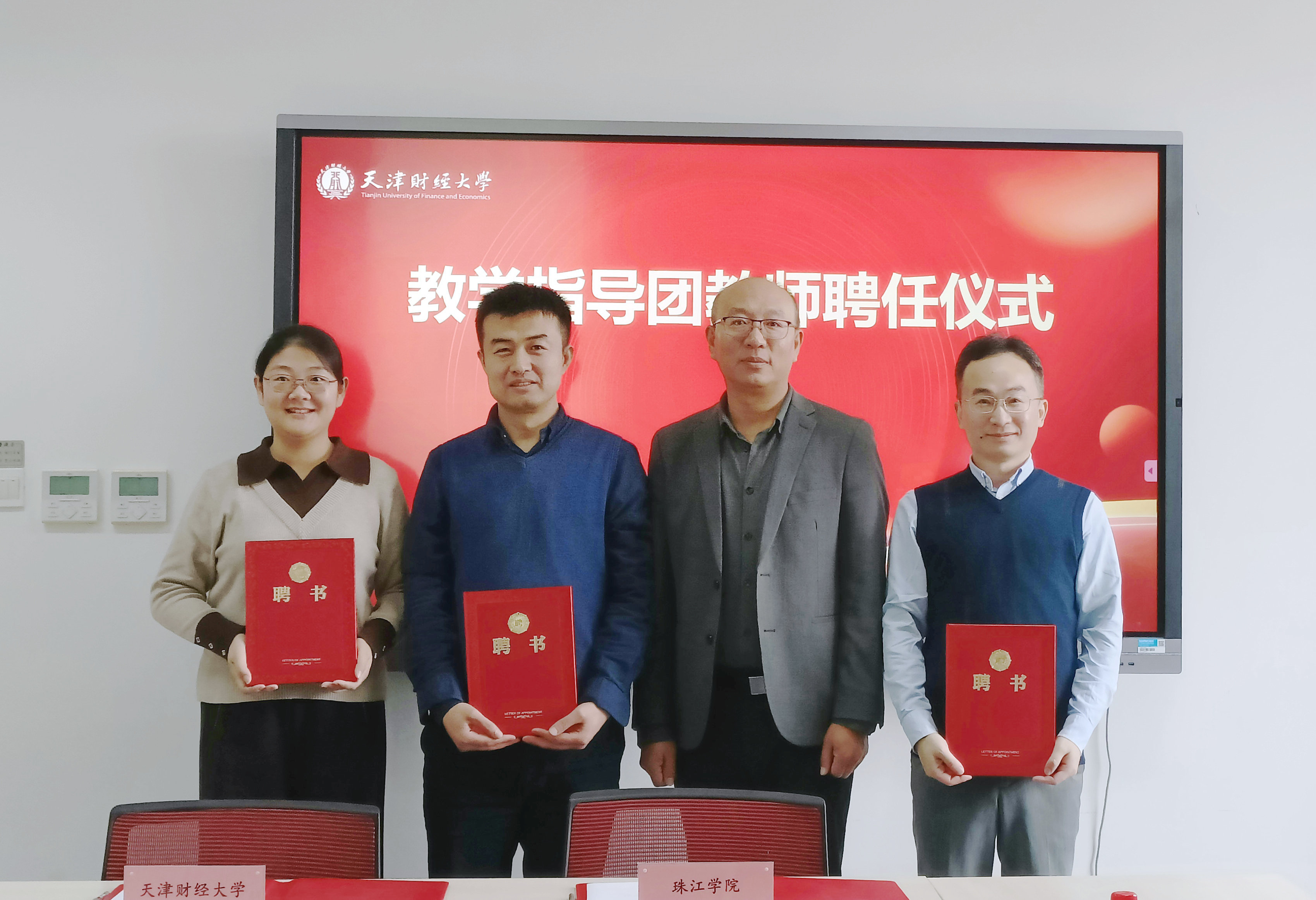 今年会官方网站党委书记梁海龙为教学指导团天津财经大学马克思主义学院教师闫海潮、金雪飞、王勤瑶颁发聘书。天津财经大学马克思主义学院院长杨书文与今年会官方网站政治理论课部部长支玉成作为双方代表共同签署共建合作协议。