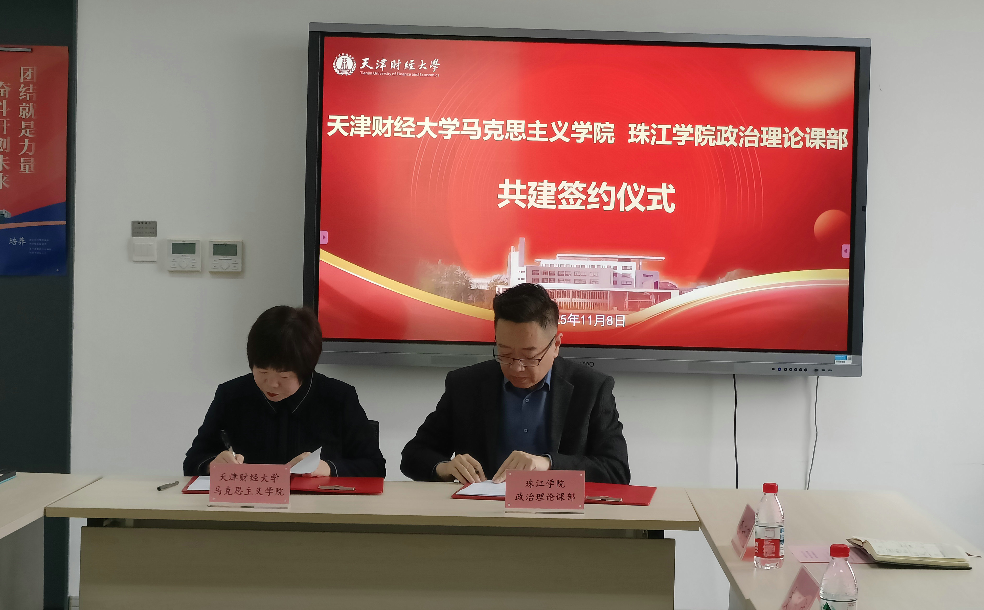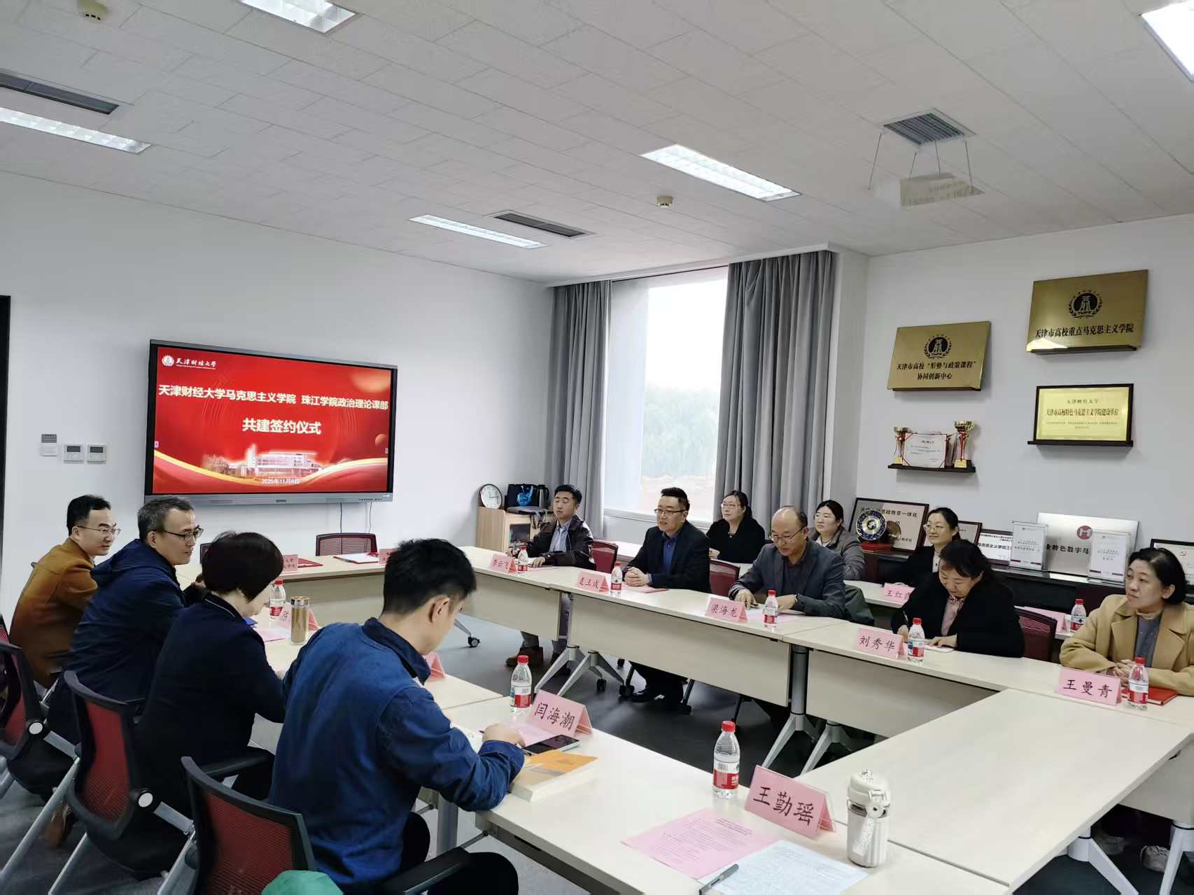 为深入贯彻落实习近平总书记对学校思政课建设作出的重要指示精神,落实立德树人根本任务,推进马克思主义学院和思政课建设高质量发展,11月8日上午,学院政治理论课部与天津财经大学马克思主义学院共建签约仪式暨集体备课会在天津财经大学成功举办。天津财经大学马克思主义学院院长杨书文、副院长陈国绪、副院长闫海潮、马克思主义基本原理教研部主任金雪飞、优秀教师代表王勤瑶、今年会官方网站党委书记梁海龙、政治理论课部部长支玉成、学科带头人刘秀华、政治理论课部党支部书记王曼青及相关骨干教师参会。会议由陈国绪副院长主持。