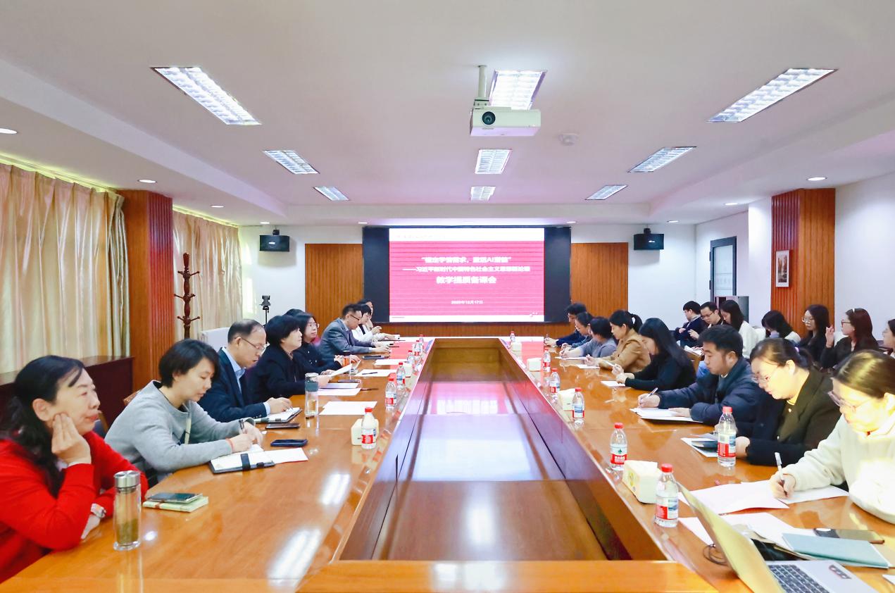 为深入落实立德树人根本任务,持续推动思政课改革创新,提升教学针对性与实效性,12月17日下午,马克思主义学院“锚定学情需求,激活AI潜能”教学提质备课会在弘毅楼328会议室召开。院长任碧云,副院长、财务总监陈明明,党委副书记、纪委书记白晓,院长助理郭鑫、赵梦蝶,马克思主义学院学科带头人、负责人及全体教师参加会议。会议由习近平新时代中国特色社会主义思想概论教研室主任张健主持。